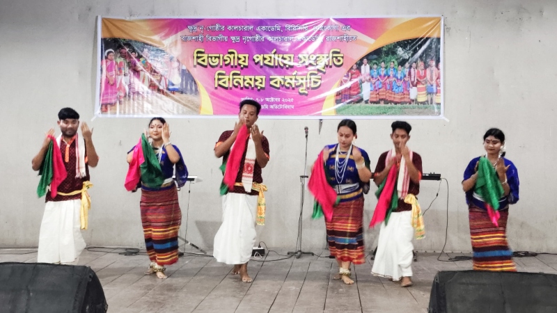 অনুষ্ঠানের শুরুতে রাজশাহী জেলা ও নেত্রকোণার বিরিশিরি এলাকার বিভিন্ন ক্ষুদ্র নৃগোষ্ঠীর সাংস্কৃতিক দল অংশ নেয়। তারা নিজেদের গান, নাচ, বাদ্যযন্ত্র, পোশাক ও লোকজ ঐতিহ্যের প্রদর্শনের মাধ্যমে সংস্কৃতির বহুমাত্রিকতা ও ঐক্যের বার্তা ছড়িয়ে দেন। উদ্বোধনের পর সাঁওতাল, ওরাও, মাহলী, মুণ্ডা, খাসি ও হাজং সম্প্রদায়ের শিল্পীদের পরিবেশনা দর্শকদের মুগ্ধ করে।