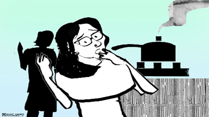 কিন্তু বাড়ি ফিরে দেখি মহাকাণ্ড। শেফালির হৃৎপিণ্ড ওর হাতের ওপর লাফাচ্ছে। প্রেসার কুকারে ভাত বসিয়েছে ও। ভীষণ শব্দ হচ্ছে আর ভাত গলে পড়ছে চারদিকে। আমরা সবাই জড়ো হয়েছি- মা, আমি, পিয়াশ মেসো। টোড়ি মাসি বাড়ি ছিল না। আমি শেফালিকে বললাম, ‘তাড়াতাড়ি চুলা বন্ধ করে রান্নাঘরের বাইরে চলে আস। প্রেসার কুকার বার্স্ট করতে পারে যে কোনো সময়।’ আমরা সবাই রান্নাঘরের বাইরে এসে রান্নাঘরের দরজা বন্ধ করে দাঁড়ালাম। বাকি দিন কী কী দুর্ঘটনা যে ঘটতে পারত তা চিন্তা করেই কাটল।